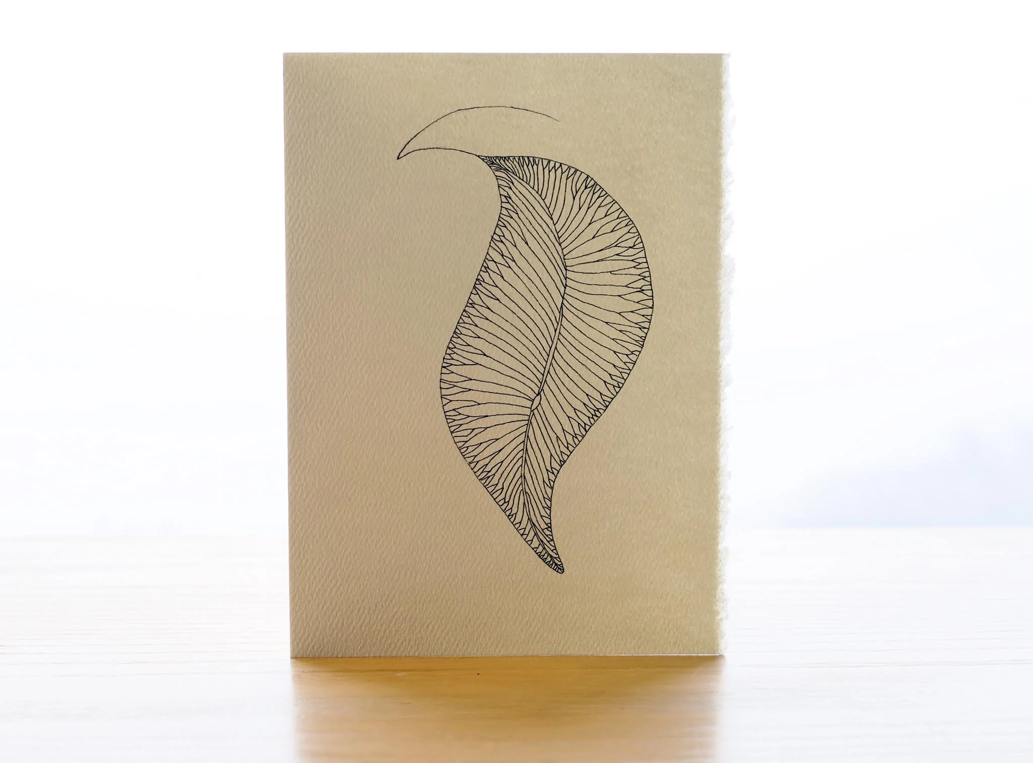 It all started in the fall of 2018 when I was living part time in the countryside. At the the time I was in my late 40’s and worked as a television and film editor for almost 20 years. While in the country, I would hike every day and began to start collecting leaves on the trail. They were so perfect in colour, shape and intricate forms, I was in awe of natures perfection. I wanted to memorialize them somehow and began drawing black in drawings on deckled vintage paper which I dyed in tea for that antique look. I analysed the leaf veigns and structure and came up with my own stylized, abstract, almost zentangle leaf drawings using a very fine point micron pen.